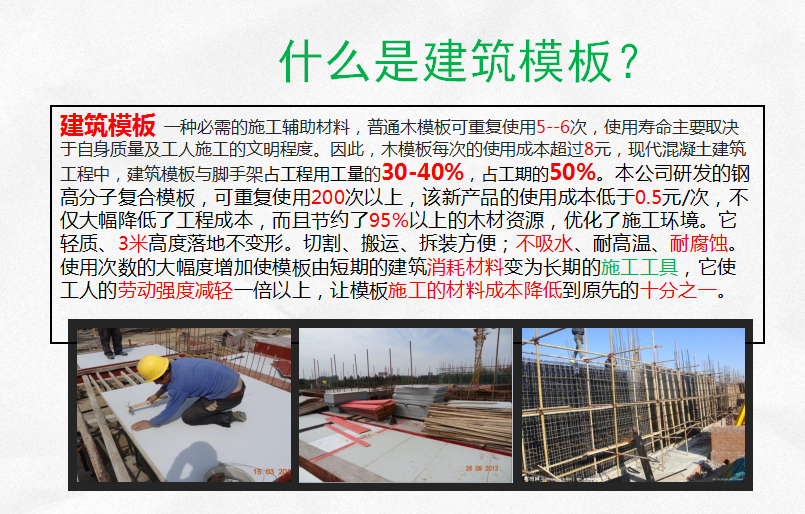 耐腐蝕耐高溫周轉(zhuǎn)次數(shù)是木模板20-30倍